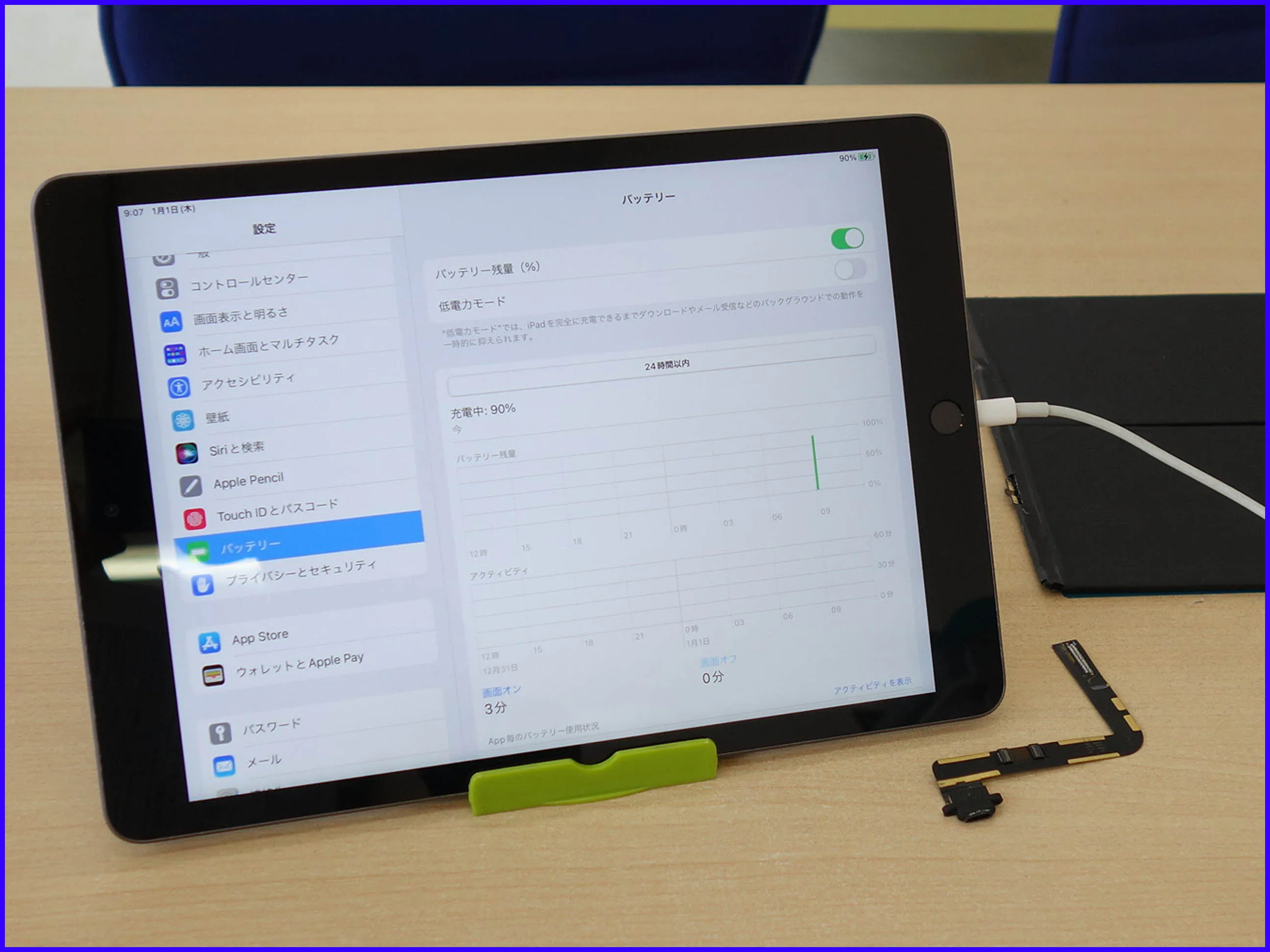 今回は、iPad 第9世代の角度をつけないと充電できなくなった修理です。