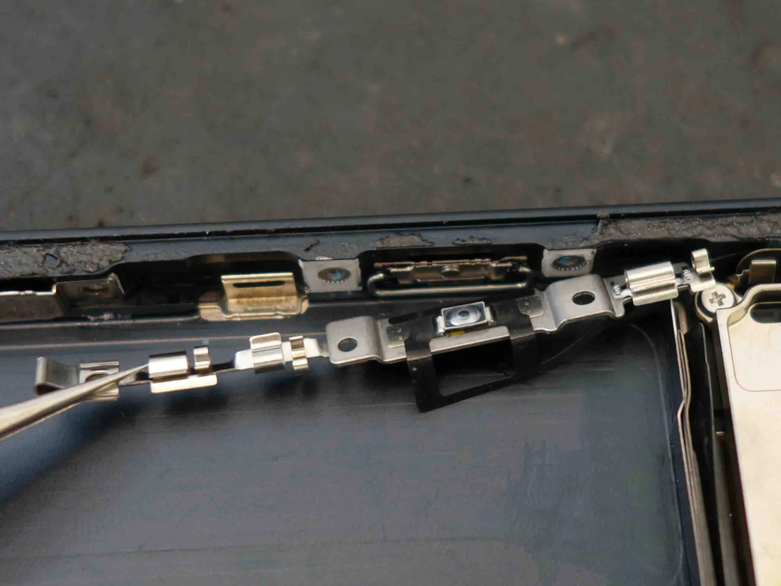 内部ケーブルの断線: 経年劣化や衝撃で、基板とボタンを繋ぐフレックスケーブルが断線している。