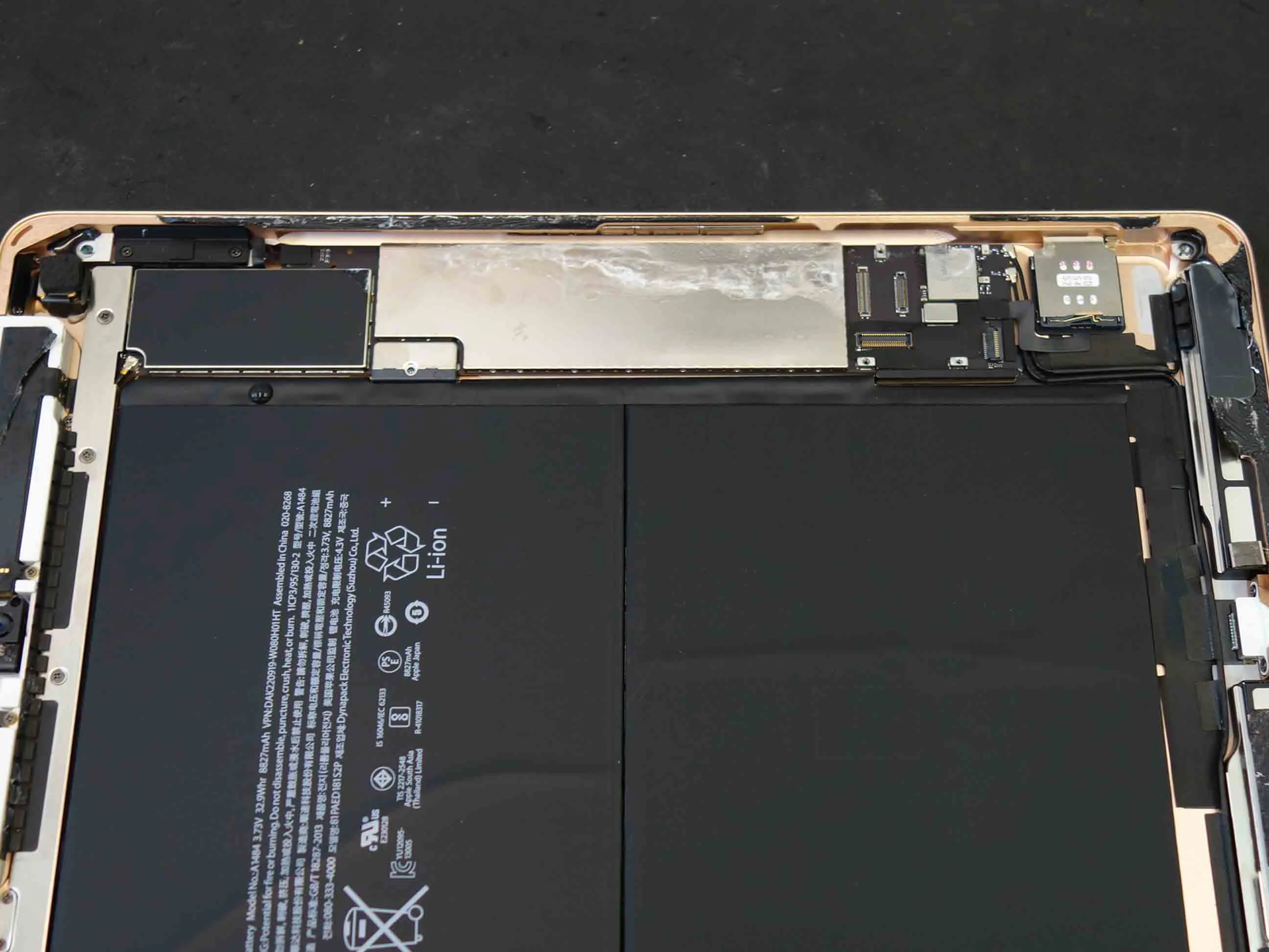 お風呂で水没したiPad第6世代の内部。基板に付着した水滴と腐食の様子
